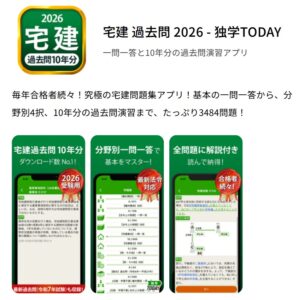 | 2 | 独学TODAY | 過去問演習を中心に学習を進めやすいタイプのアプリです。問題数を重視しながら、得点力を高めたい方に向いています。 | 過去問をたくさん解きたい人、演習重視の人 |