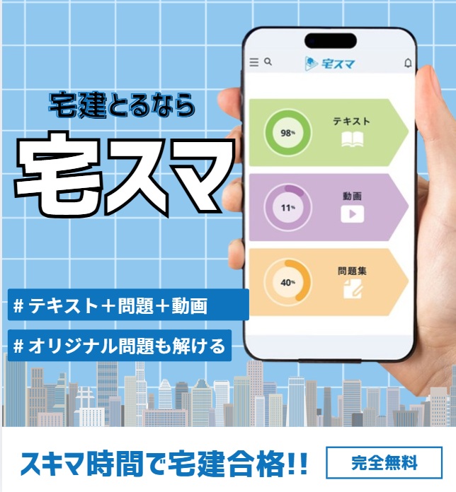 宅スマなら、スキマ時間を使って宅建の動画学習・問題演習を進められます。宅スマで無料学習を始める